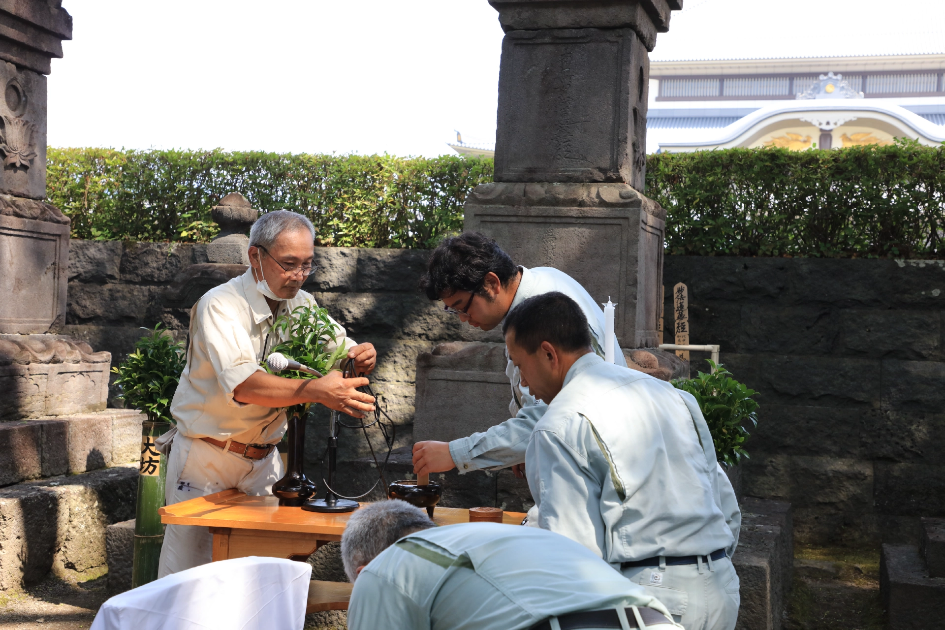 年中行事にしたがい、法要に向けた準備として、時には数ヶ月前から計画的に、職場の方達とともに、草刈りや伽藍などの掃除をコツコツと続けます。