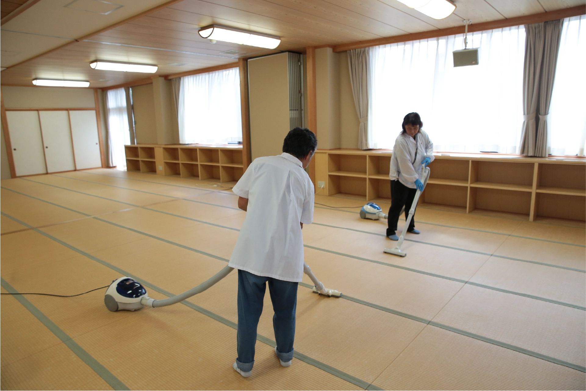 私達は、塔中坊の本堂・広間・廊下など室内の清掃や、外周、庭園など屋外の清掃を、日常の業務として行っています。