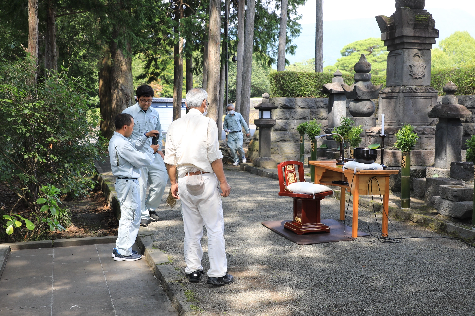 年中行事にしたがい、法要に向けた準備として、時には数ヶ月前から計画的に、職場の方達とともに、草刈りや伽藍などの掃除をコツコツと続けます。